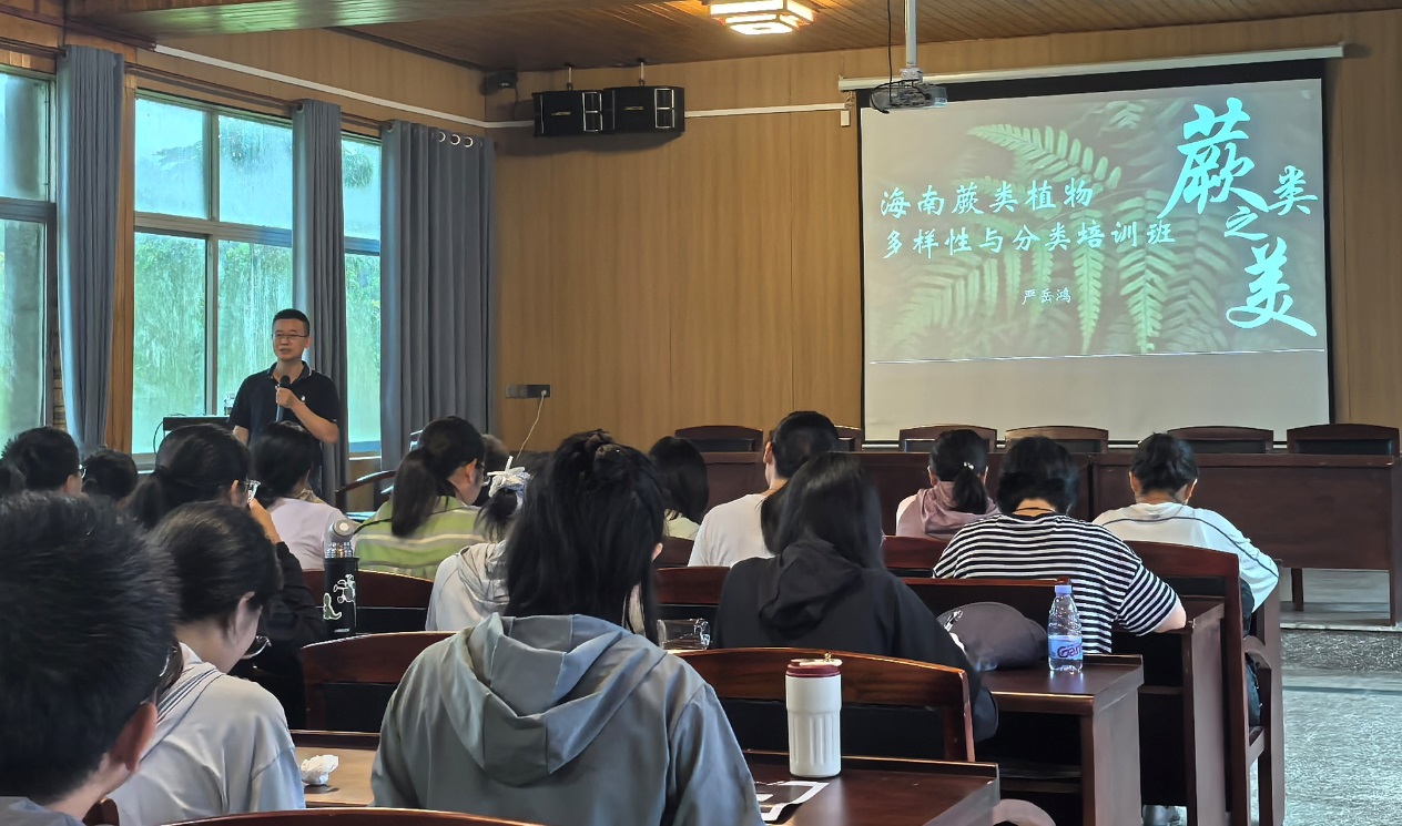 8月16日转为线下培训阶段,学员深入吊罗山热带雨林,在华东师范大学朱瑞良教授、海南国家公园研究院/海南大学任明迅教授、中国科学院西双版纳热带植物园李波研究员、上海辰山植物园严岳鸿研究员、中国医学科学院药用植物研究所海南分所李榕涛研究员、中国科学院华南植物园(华南国家植物园)叶华谷研究员等17位导师指导下,系统学习了《苔藓植物的分类和分布》《海南热带雨林的生物多样性》《植物标本采集与压制》《植物标本的意义:以华南国家植物园标本馆为例》《唇形科的分类与系统》《海南蕨类植物多样性与分类》等专题课程,并通过分组实操掌握了标本采集、压制及智能数据录入技术。
